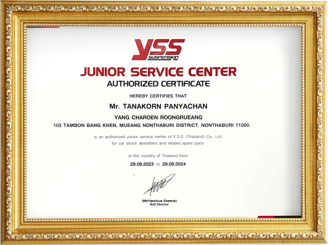 ร้านยางเจริญรุ่งเรือง นนทบุรี งามวงศ์วาน มีความยินดีที่ได้รับการแต่งตั้งเป็น ศูนย์บริการ YSS เพื่อเป็นสถานที่ให้บริการติดตั้ง ซ่อมบำรุง พร้อมทั้งให้คำปรึกษาในการใช้งานโช๊คอัพ YSS
