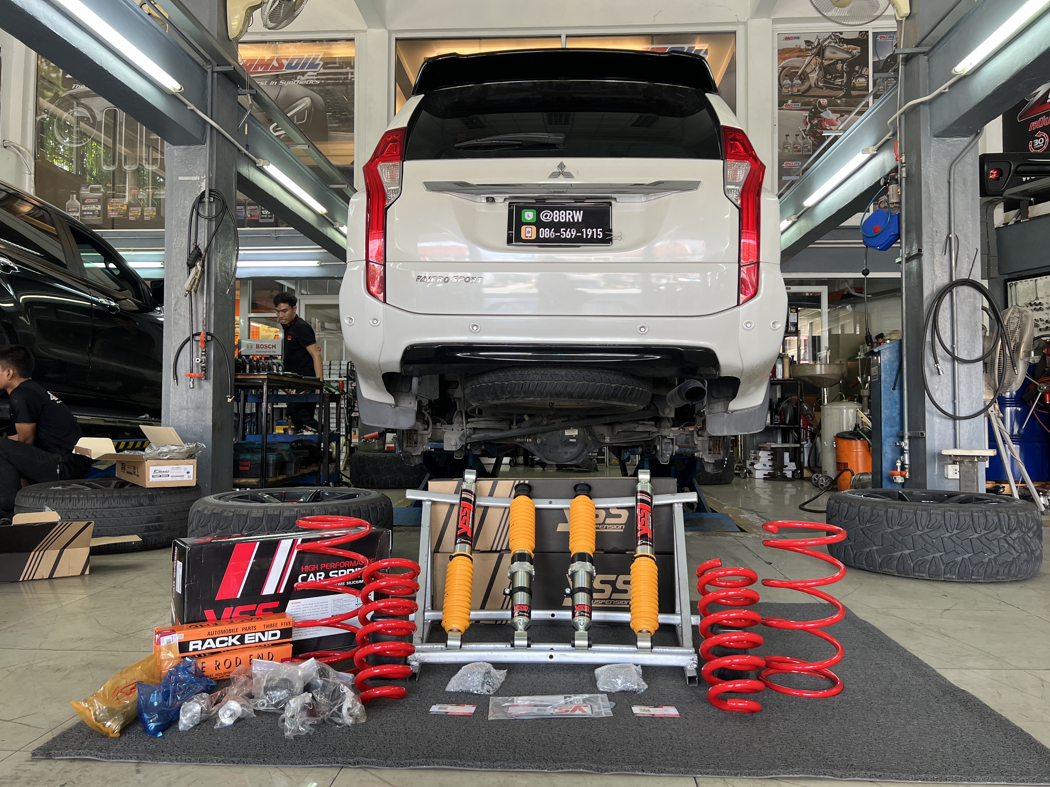 Mitsubishi pajero เข้ารับบริการอัพเกรดช่วงล่างเพิ่มความนุ่ม หนึบ ลดอาการโคลงเคลงย้วยส่าย เน้ใช้งานประจำวัน ใช้งานง่าย ไม่ต้องปรับไม่เสียเวลา