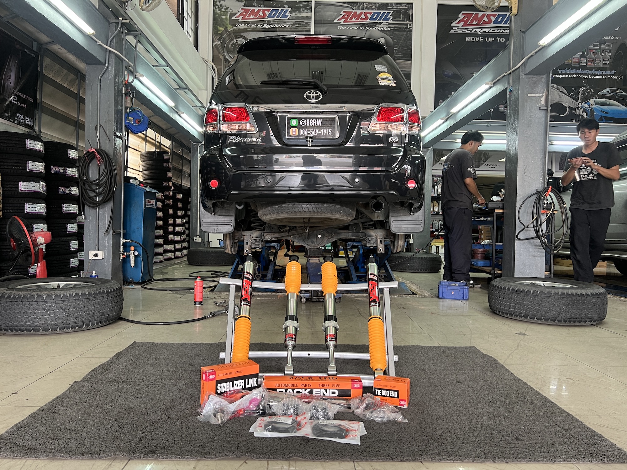TOYOTA FORTUNER เข้ารับบริการเปลี่ยนโช้คอัพรถยนต์ใช้งานแทนของเดิมติดรถ