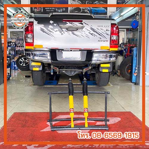 TOYOTA HILUX REVO ROCCO โช๊คอัพเก่าเสื่อม ใช้งานมานาน เข้ารับบริการเปลี่ยนโช๊คอัพใหม่ เฉพาะคู่หลัง อยากได้แบบหนึบนุ่ม จัดการให้ครับ